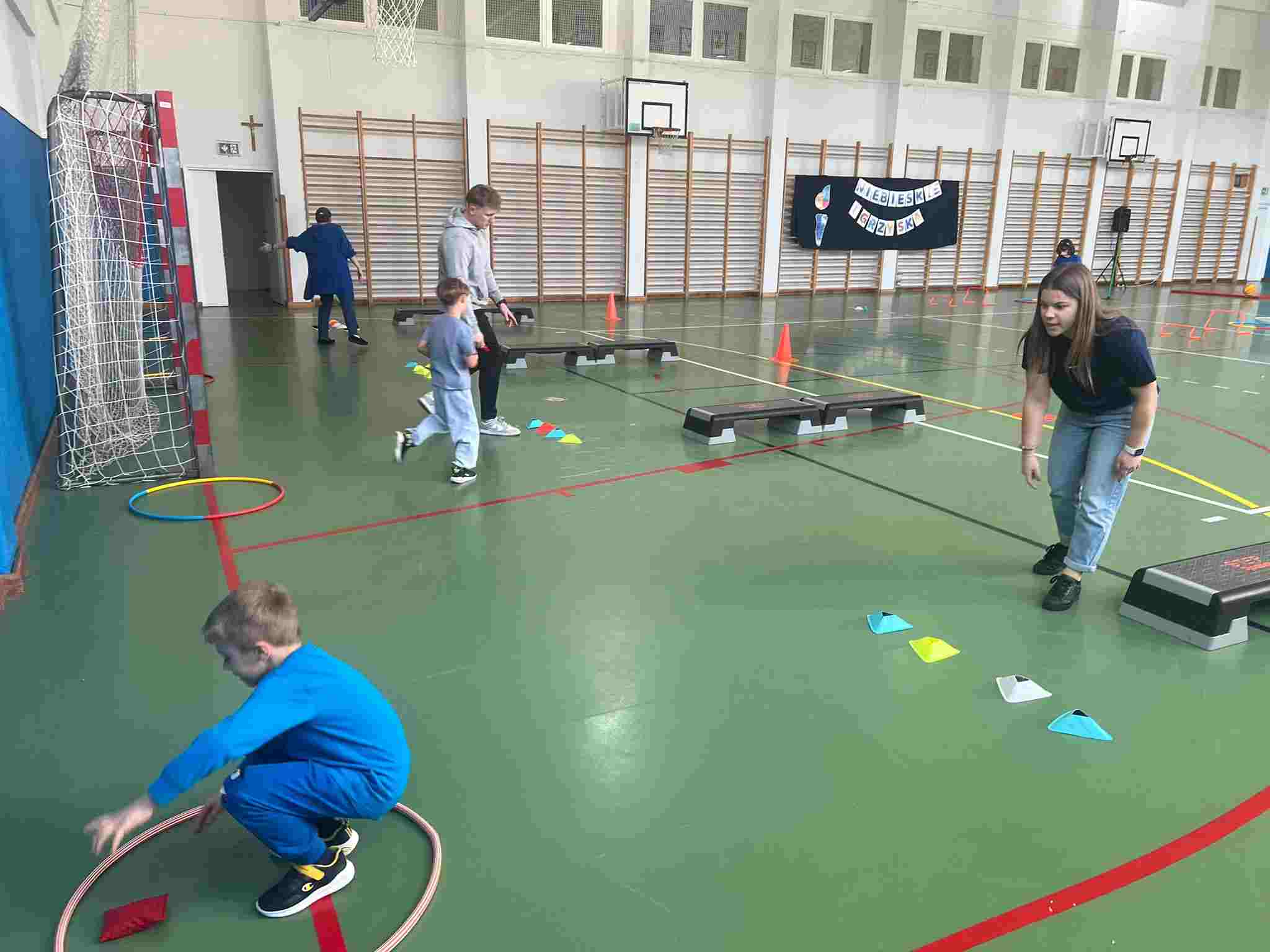 W ramach wydarzenia klasy 1-3 uczestniczyły w Niebieskich Igrzyskach. Wydarzenie było doskonałą okazją do świetnej zabawy połączonej ze zdrową rywalizacją i aktywnością ruchową. Uczniowie z dużym zaangażowaniem pokonywali tory przeszkód, rozwijając swoją sprawność oraz ucząc się współpracy. Igrzyska przebiegły w radosnej atmosferze i były ważnym elementem budowania empatii oraz otwartości na potrzeby innych.