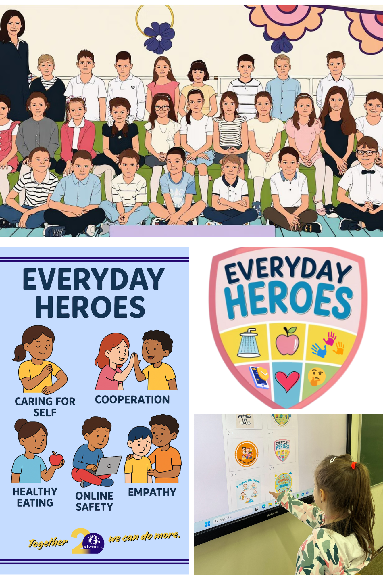 Uczniowie klasy 1c biorą udział w międzynarodowym projekcie eTwinningowym „Everyday Heroes”. W listopadzie stali się jego współorganizatorami, współpracując z rówieśnikami z Turcji, Rumunii i Albanii.