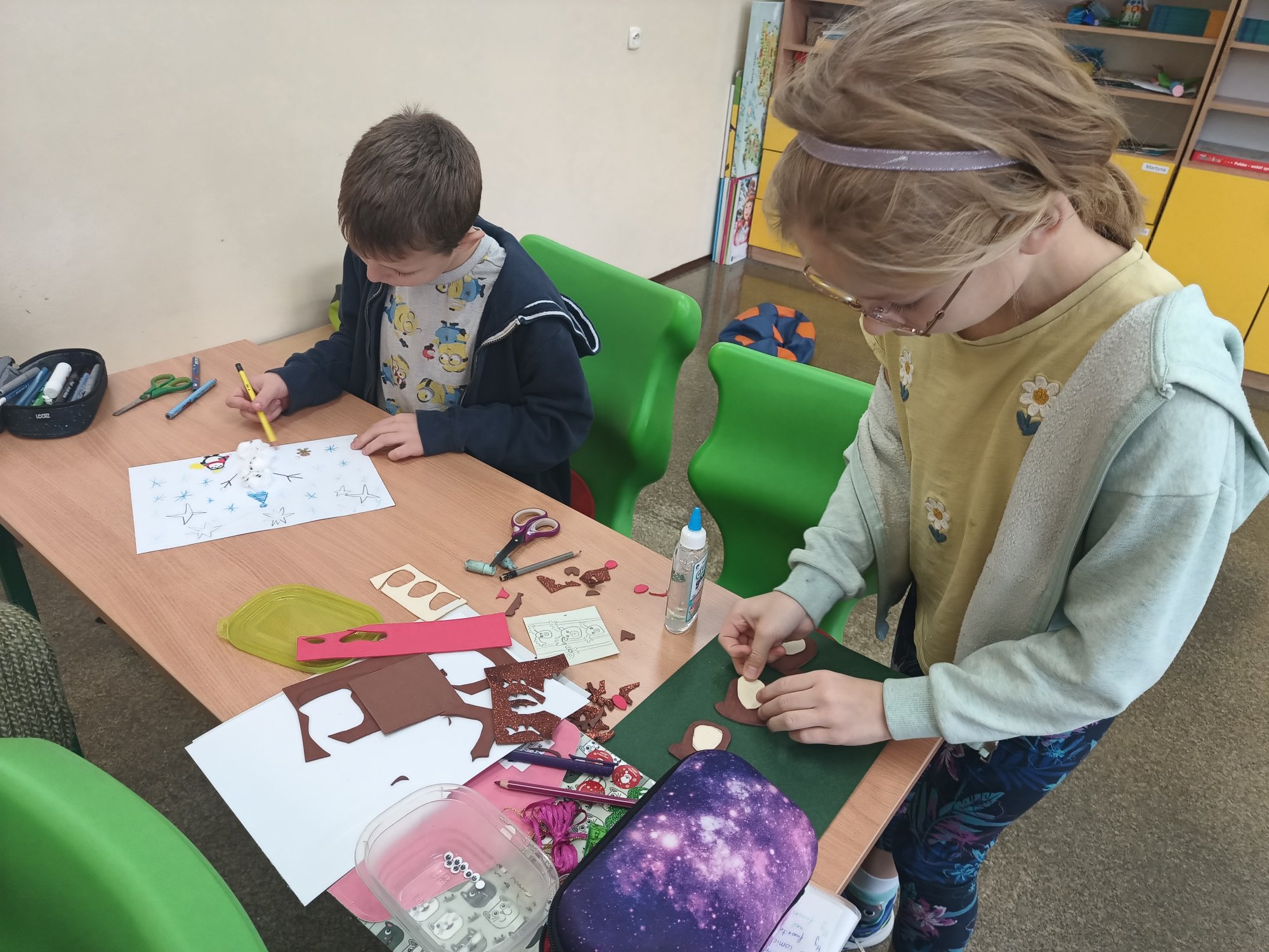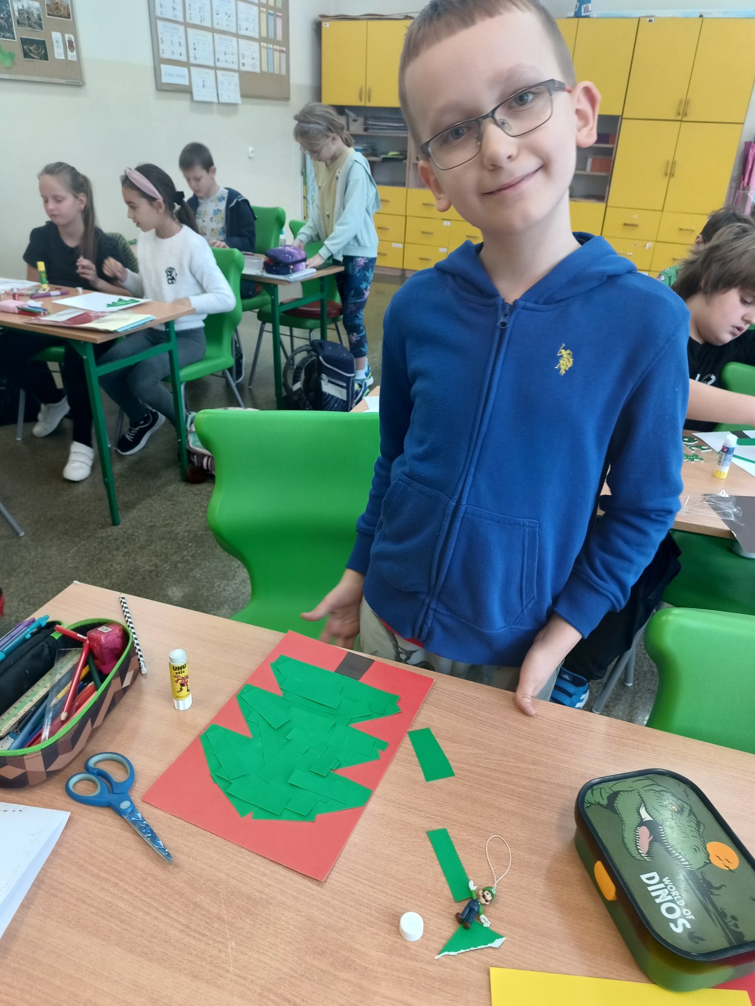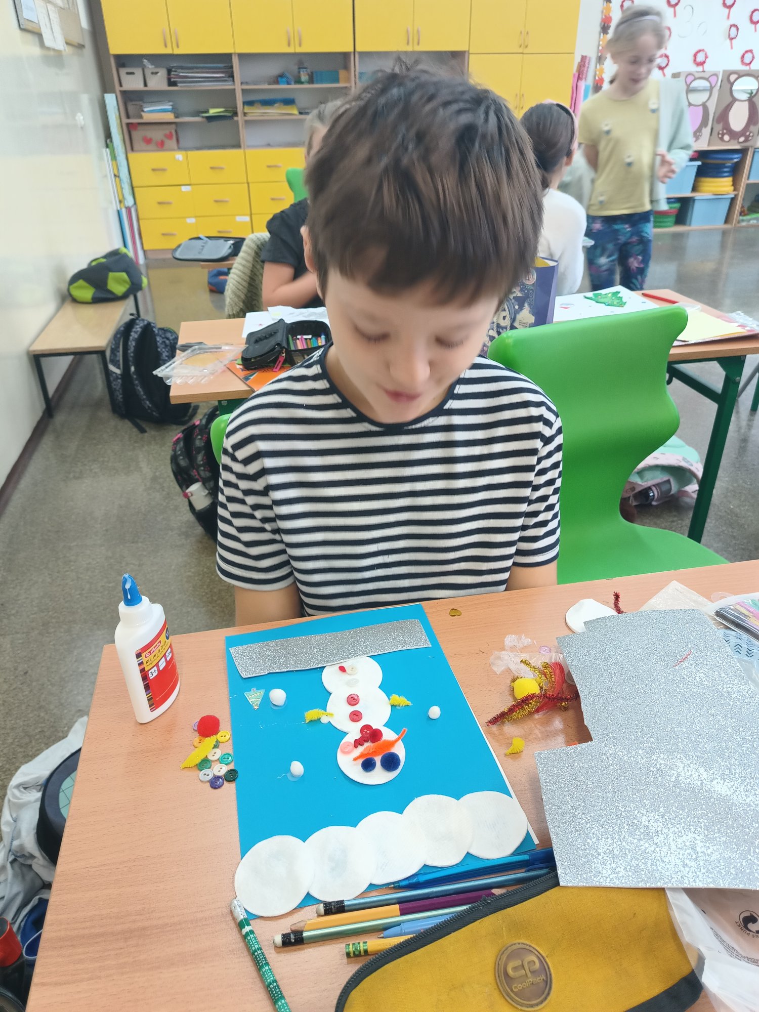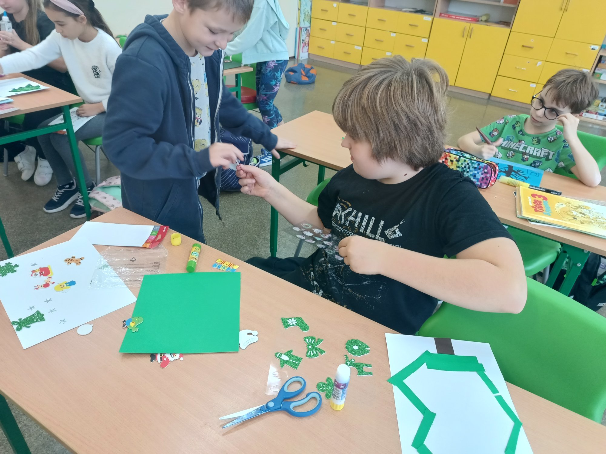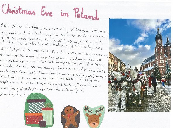 Dzieci pracowały również nad kartkami bożonarodzeniowymi, które zostały wysłane do szkół partnerskich. Finalnym etapem było stworzenie książki kucharskiej z tradycyjnymi polskimi potrawami wigilijnymi – tutaj 3a wspierali koledzy ze starszych klas. Wspólnymi siłami opracowali piękną książkę, którą możecie zobaczyć klikając w poniższy link (przepisów było dużo więcej, niestety w końcowym projekcie mogło znaleźć się tylko kilka przepisów):