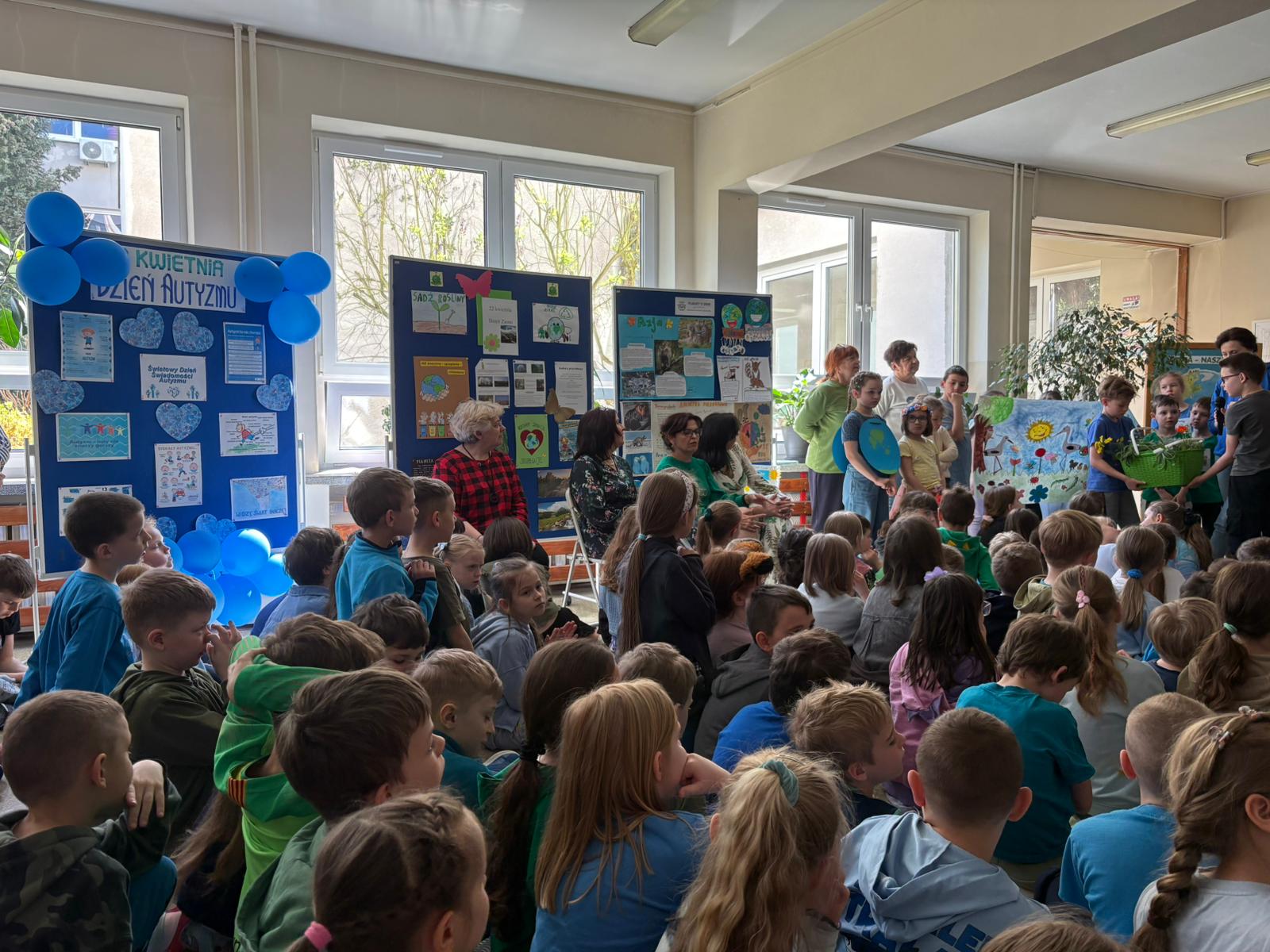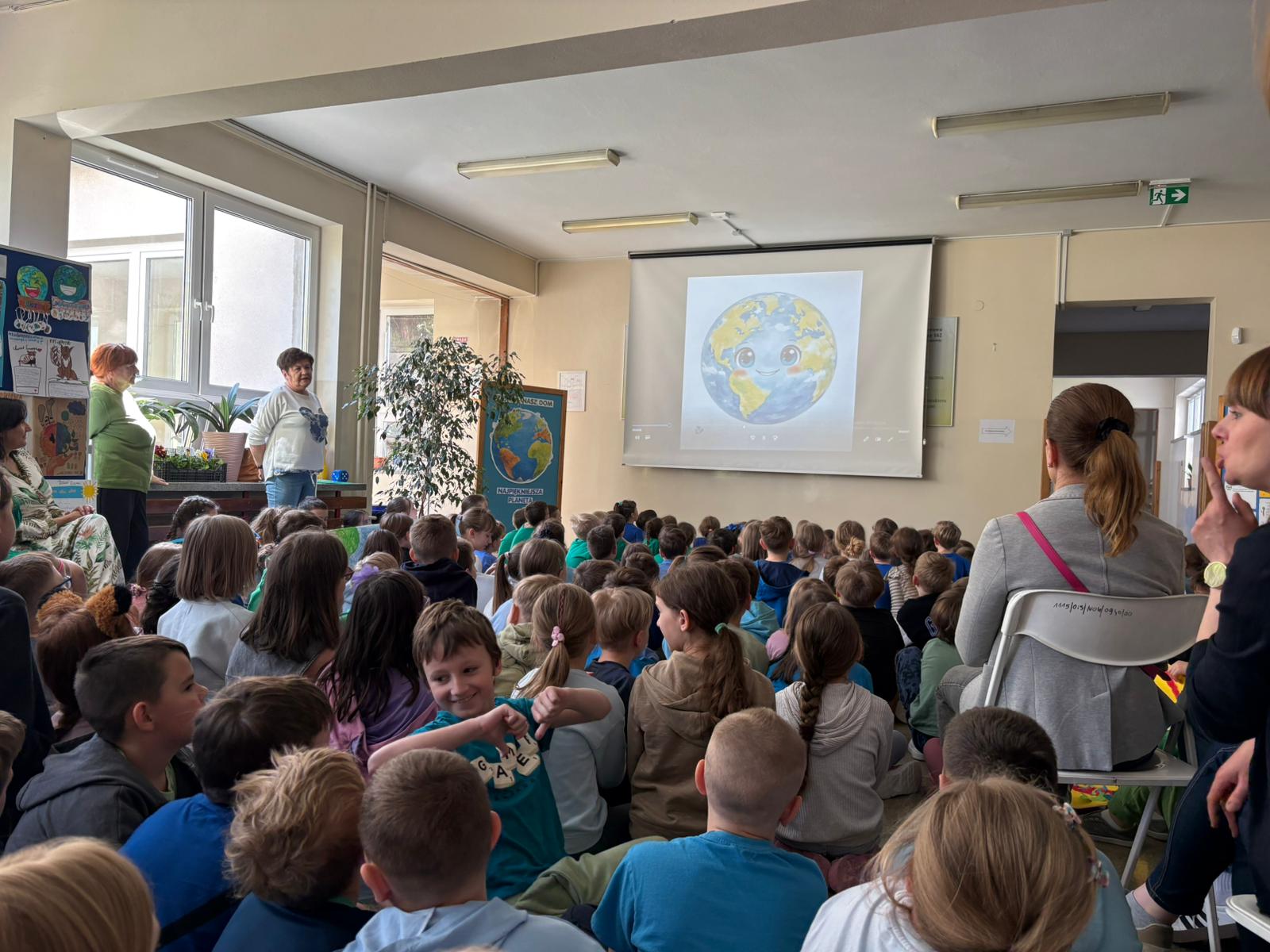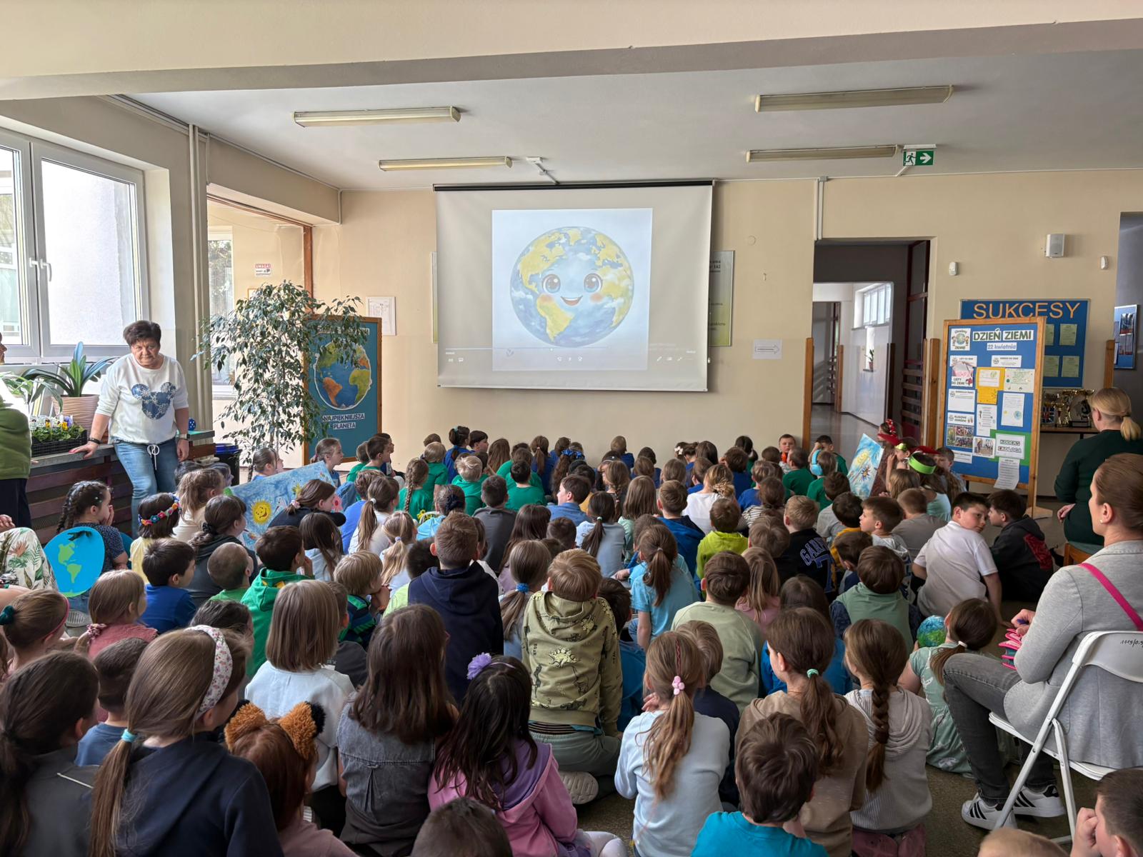 Dziś w naszej szkole odbył się uroczysty apel podsumowujący działania ekologiczne uczniów klas 0–3 z okazji Dnia Ziemi.
