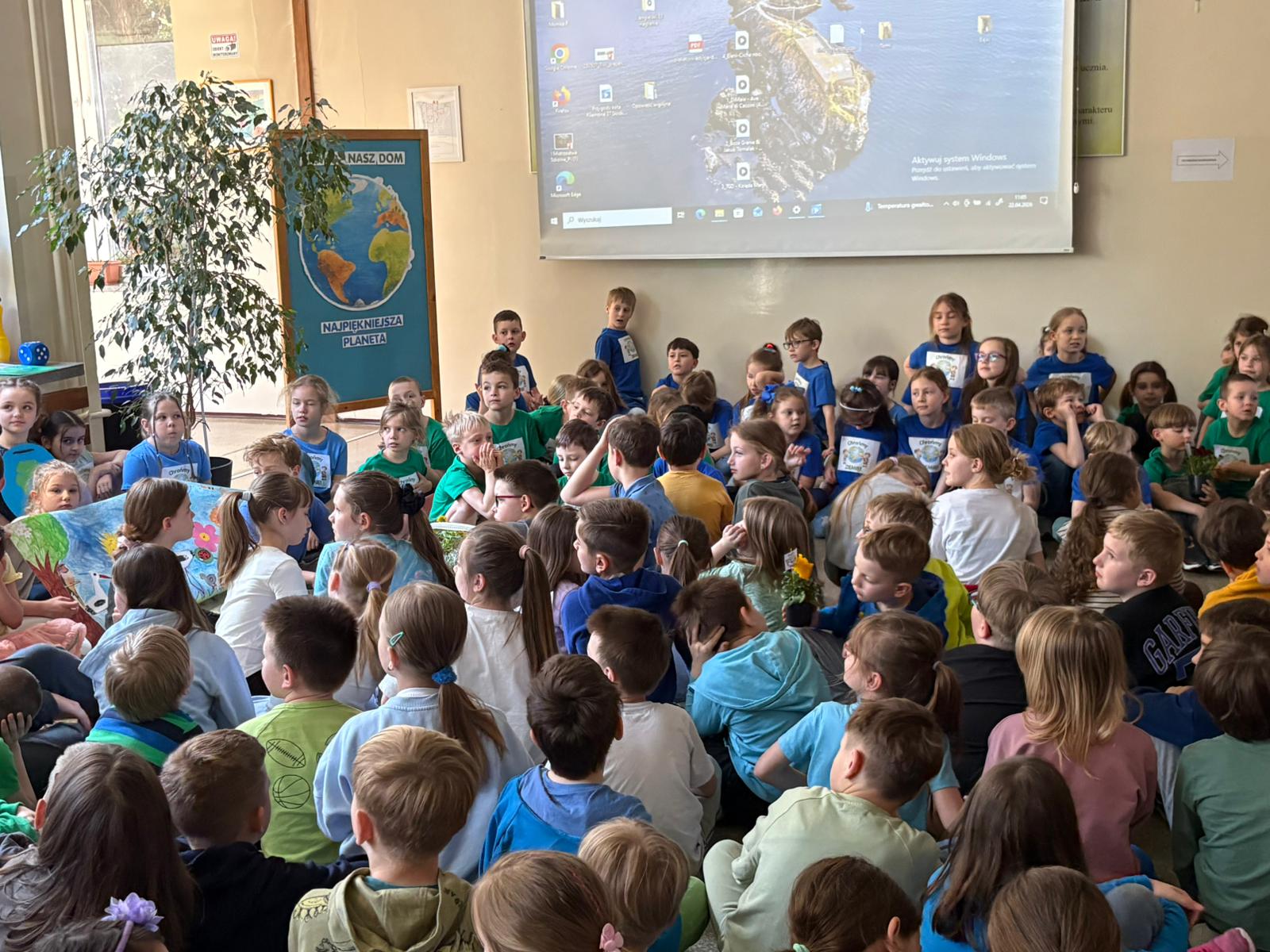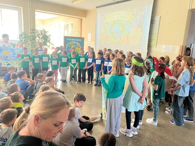 Uczniowie przyszli ubrani w kolory naszej planety – niebieski i zielony – tworząc piękną, ekologiczną atmosferę tego wyjątkowego dnia.