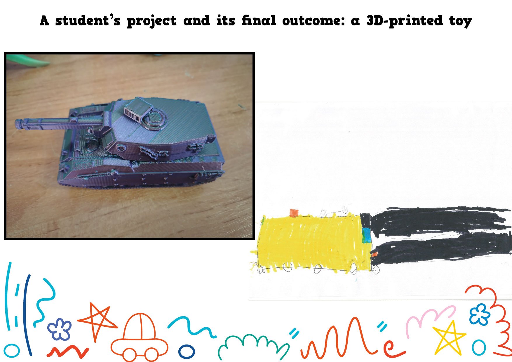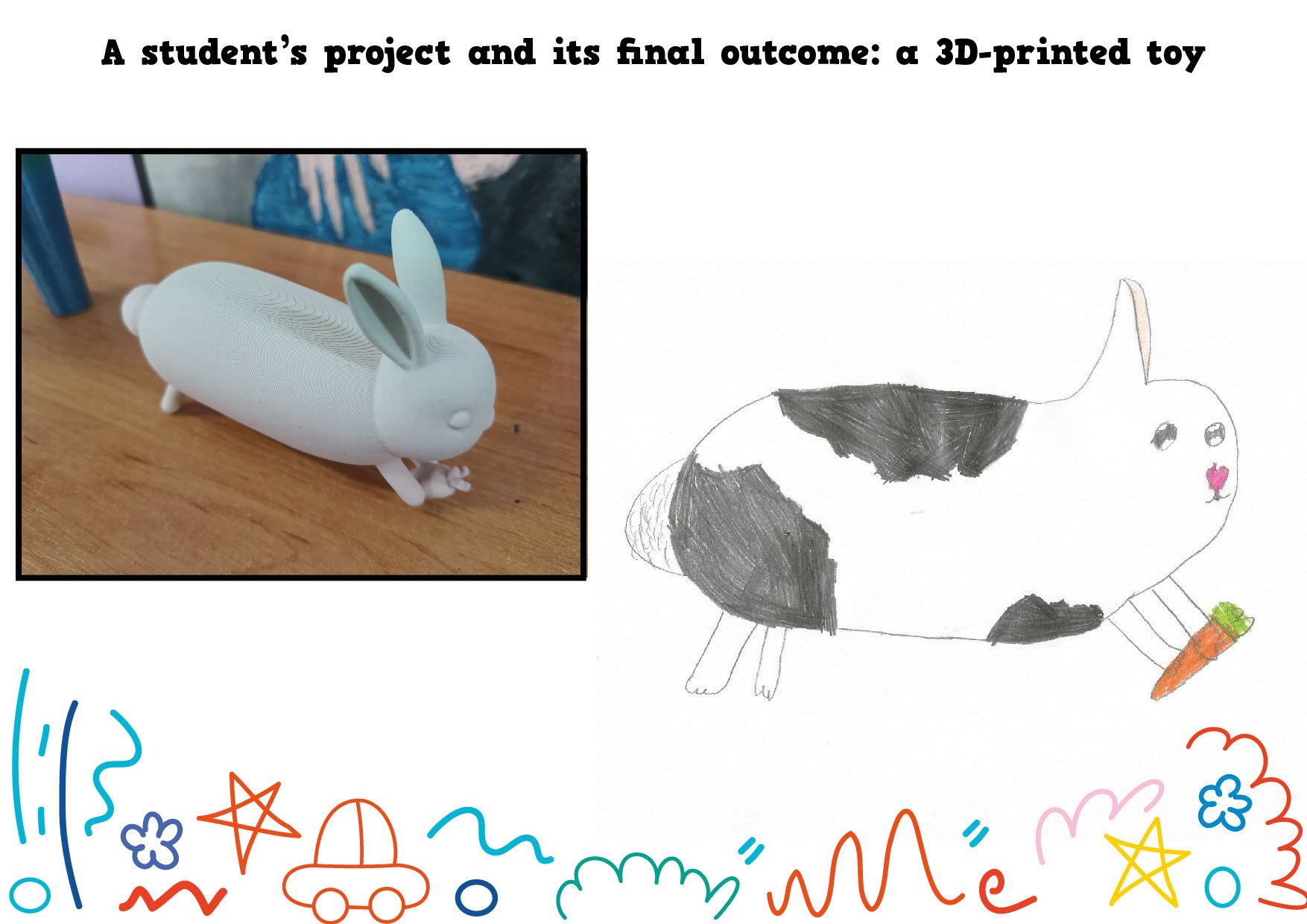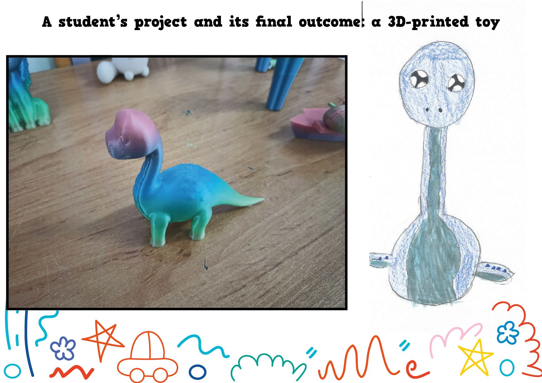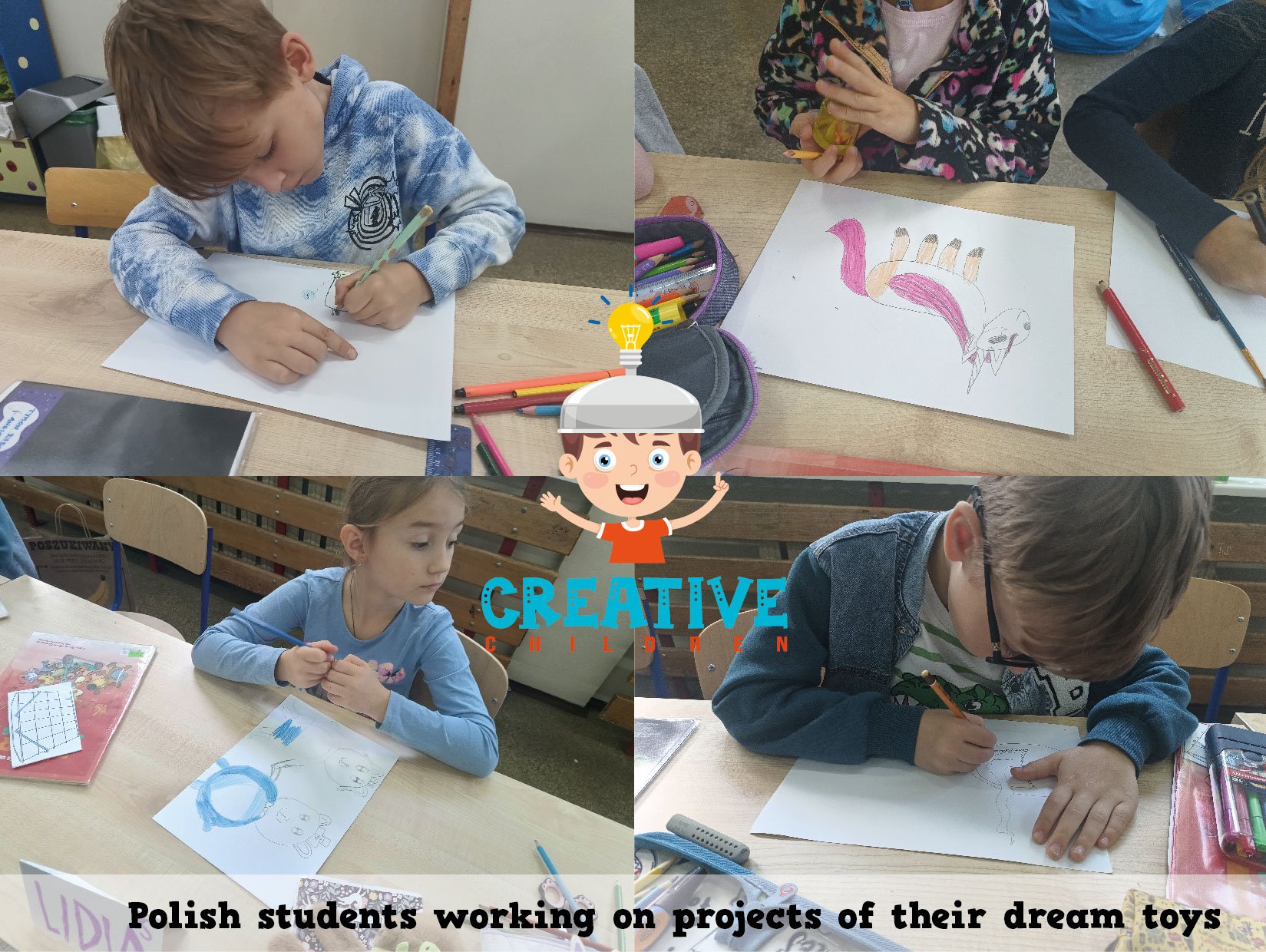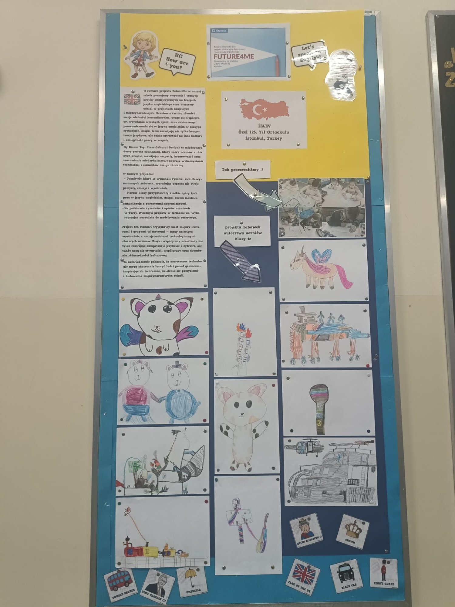 W ramach międzynarodowego projektu eTwinning My Dream Toy: Cross-Cultural Designs najmłodsi uczniowie naszej szkoły wcielili się w role projektantów. Dzieci z klasy 1c oraz z naszego oddziału przedszkolnego narysowały projekty swoich wymarzonych zabawek. Te projekty powędrowały w ręce starszych uczniów, którzy w prosty sposób opisali te zabawki w języku angielskim (z czego są zrobione i jak działają). Następnie te prace wraz z opisami zostały wysłane do szkoły w Turcji i uczniowie tamtejszej siódmej klasy wybrali dziesięć z nich i, przy użyciu programów do projektowania, przekształcili te rysunki w modele 3D. Kolejnym krokiem było wydrukowanie zabawek na drukarce 3D i wysłanie ich do małych autorów.