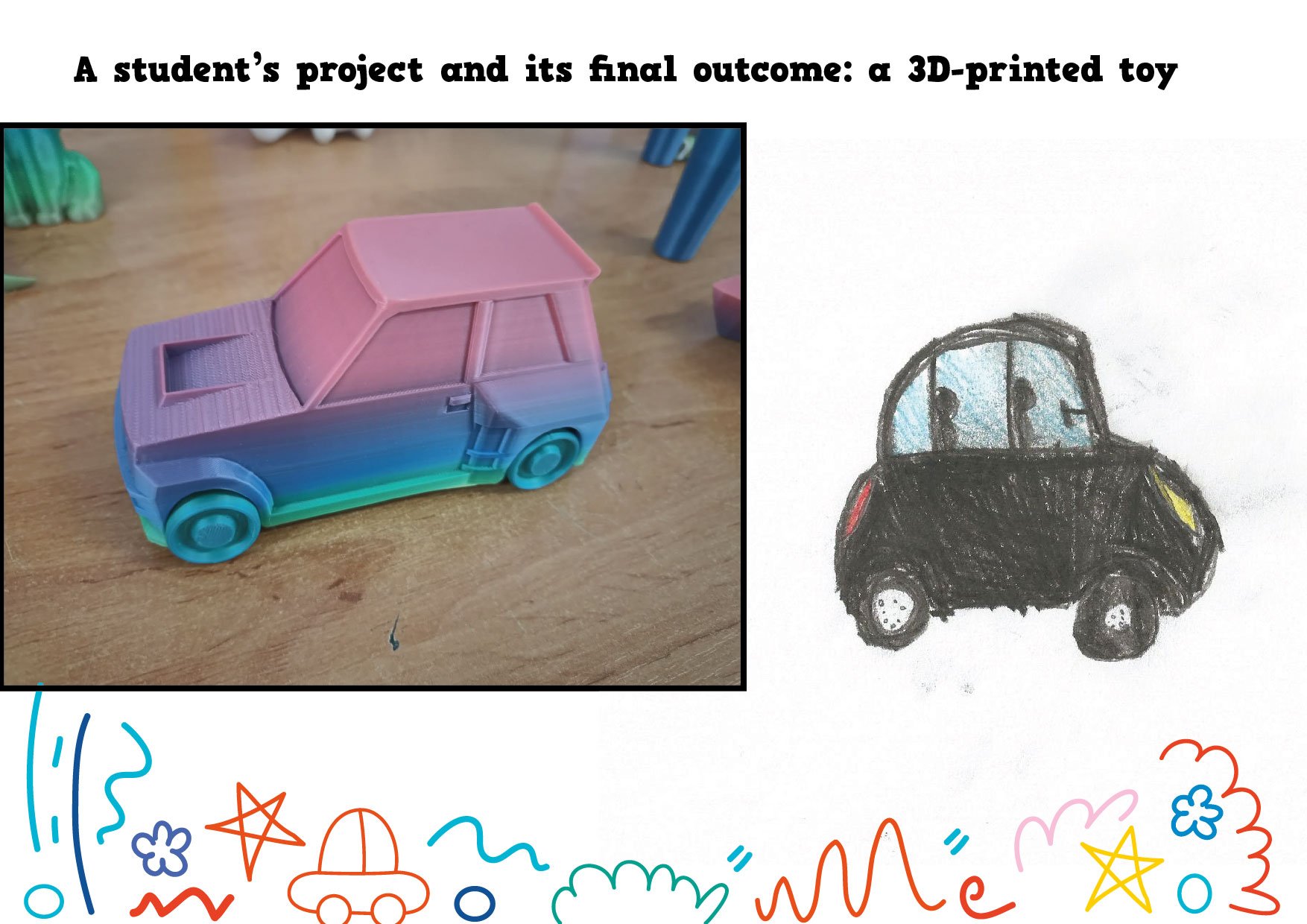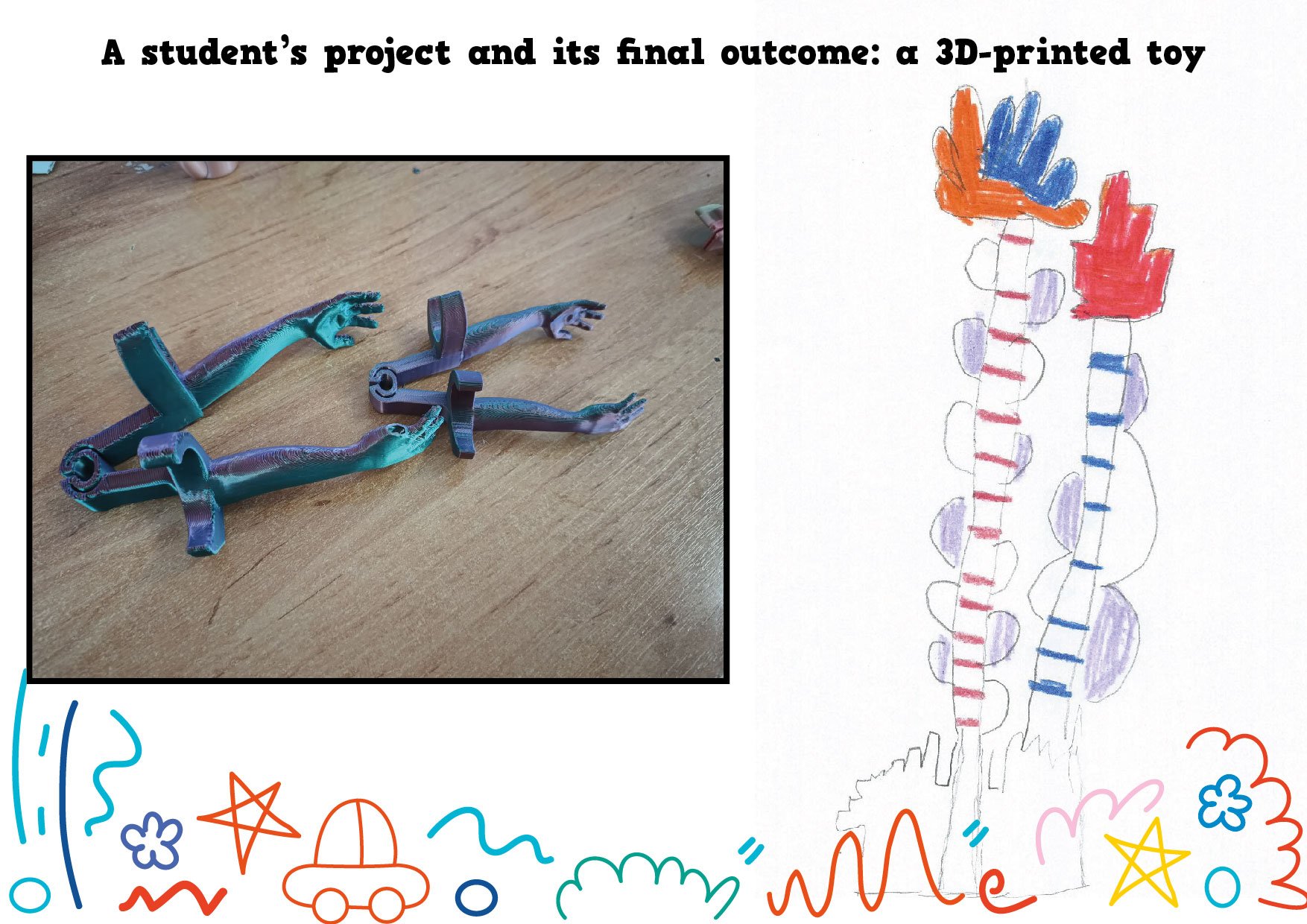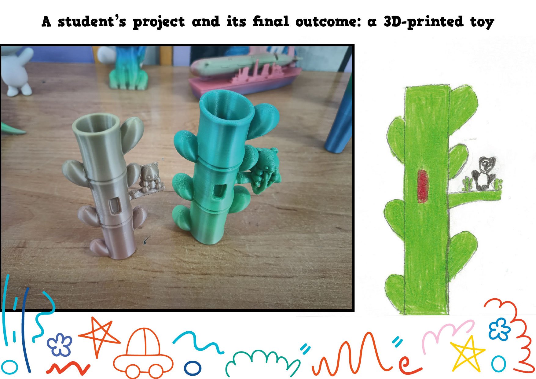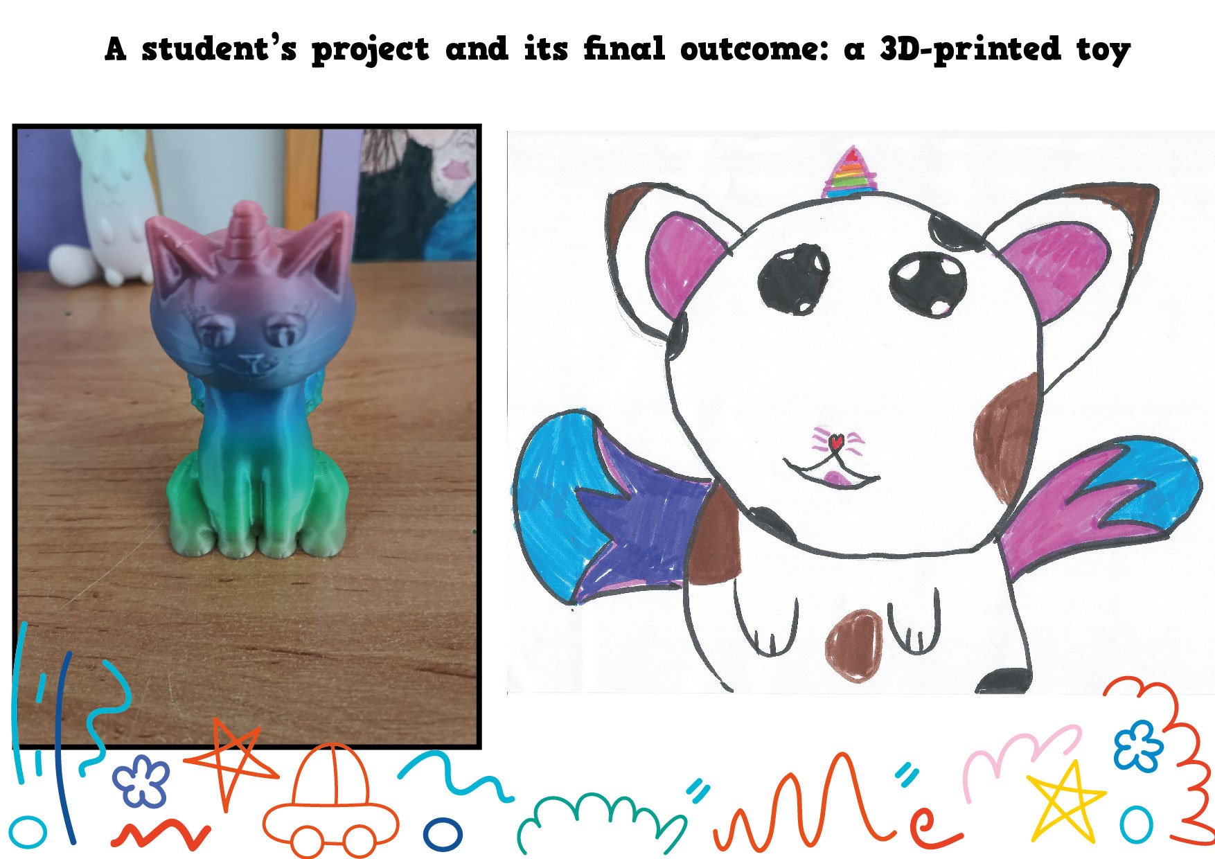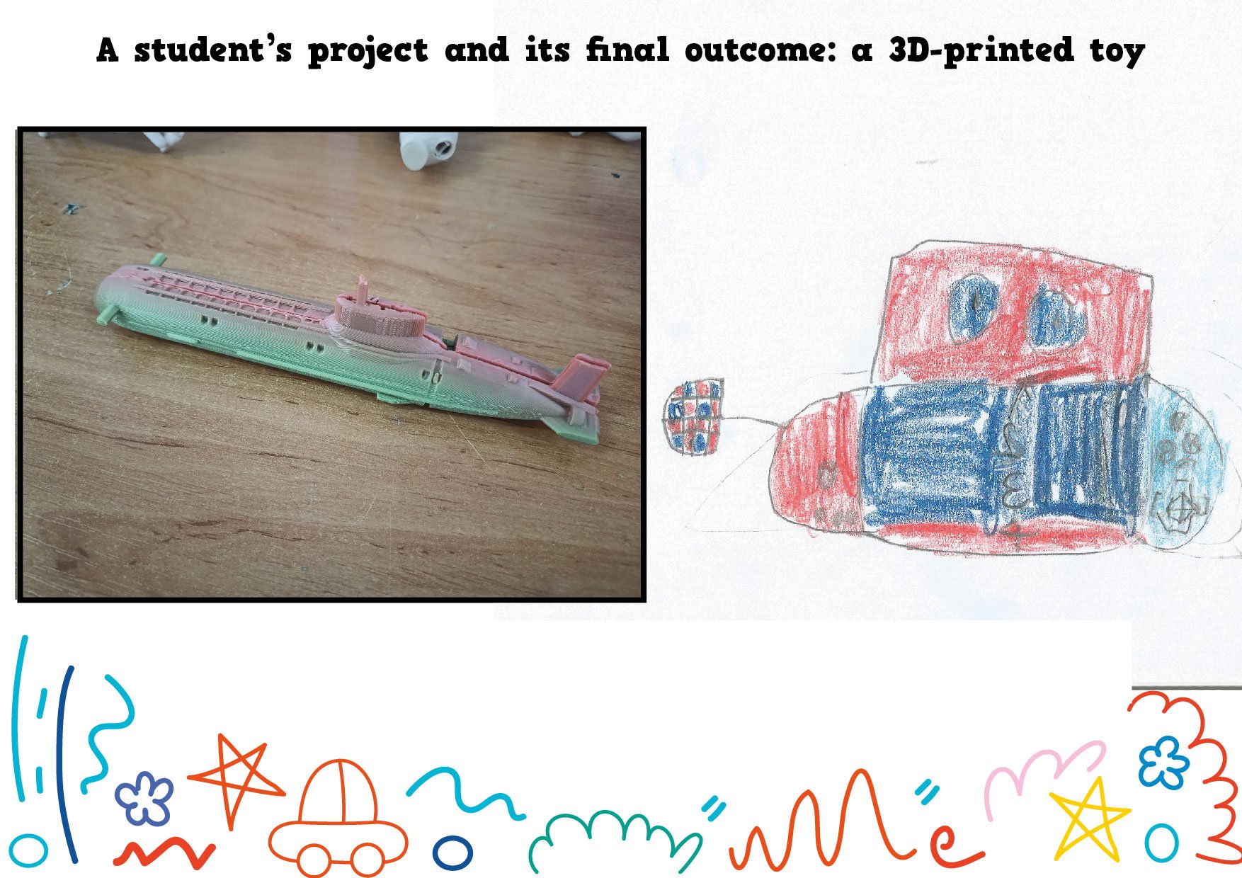 W ramach międzynarodowego projektu eTwinning My Dream Toy: Cross-Cultural Designs najmłodsi uczniowie naszej szkoły wcielili się w role projektantów. Dzieci z klasy 1c oraz z naszego oddziału przedszkolnego narysowały projekty swoich wymarzonych zabawek. Te projekty powędrowały w ręce starszych uczniów, którzy w prosty sposób opisali te zabawki w języku angielskim (z czego są zrobione i jak działają). Następnie te prace wraz z opisami zostały wysłane do szkoły w Turcji i uczniowie tamtejszej siódmej klasy wybrali dziesięć z nich i, przy użyciu programów do projektowania, przekształcili te rysunki w modele 3D. Kolejnym krokiem było wydrukowanie zabawek na drukarce 3D i wysłanie ich do małych autorów.